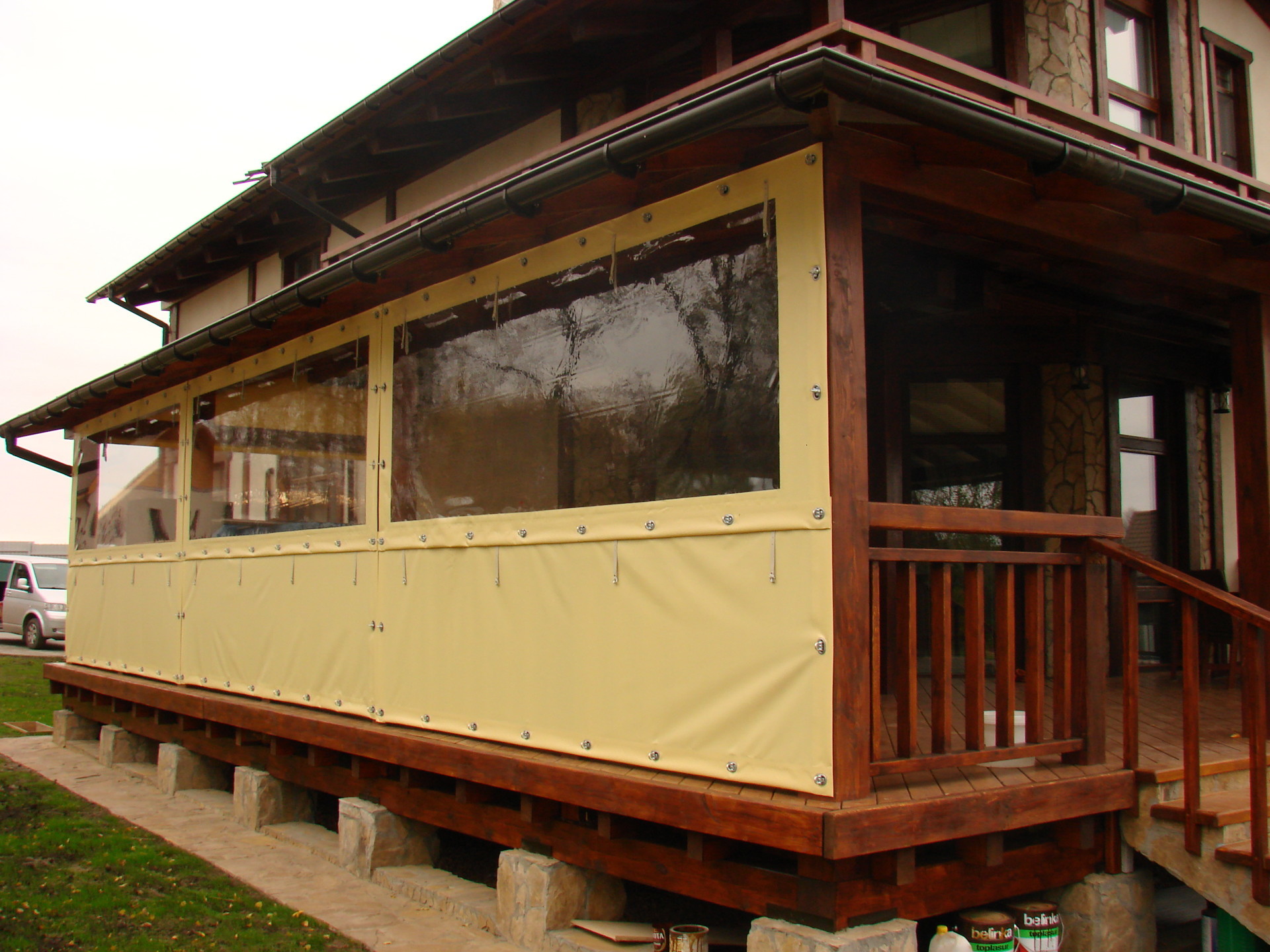 Установленные мягкие окна выглядят как полноценное остекление